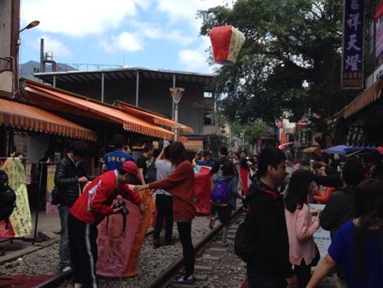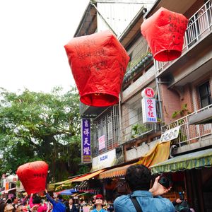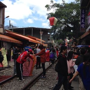 十分は台北市から電車で1時間、台湾三大ローカル線の一つ平渓線(台湾鉄路) に乗って行くことができます。十分駅を降りると昔懐かしい民家や自然風景が広がります。 昔からこの地は、人里離れた山地で、盗賊が現れると村人たちは山に隠れ、盗賊が去るのを待ち、天燈を使って連絡し合ったといわれる、 らんたん (天燈)の発祥地です。夜空に願い事を書いたらんたんを飛ばす平溪天燈節は、 台湾の旧暦・元宵節に行われ、毎年十分には数万人が訪れます。