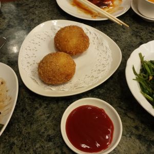 家族が海鮮系が苦手なため、北京ダックや肉系が多そうな萬珍楼へ。たまたま宿泊したホテルからも近く、大きな看板ですぐにお店も見つかりました。予約した19時より10分前に行きましたが、すでに現地の方々で1階はいっぱいで地下へ案内されました。地下は正直きれいとはいえない感じでした。丸焼きの北京ダックは肉もいただくようにとりわけられており、足りないネギや包む皮も無料で追加してもらえました。