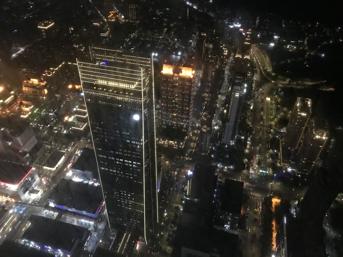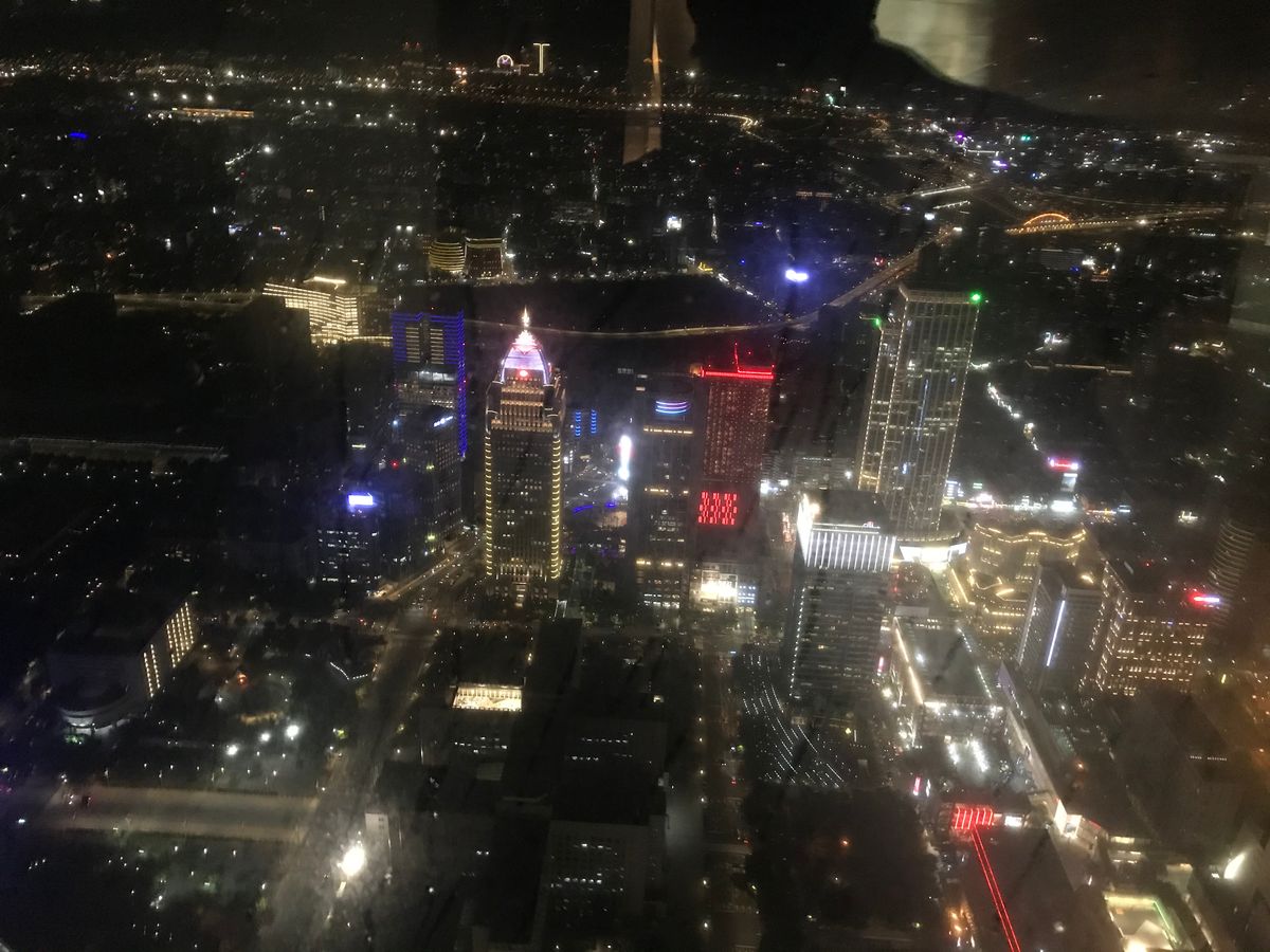 食べた後に次は展望台へ。ファストパス利用だったため、スムーズに入ることができ、展望台に着いた時刻が丁度、日没時間だったため、夕暮れと夜景の両方を見ることができました。また天気も良かったため、屋外展望台に行くことができ、屋外でも綺麗な景色を見ることが出来ました。