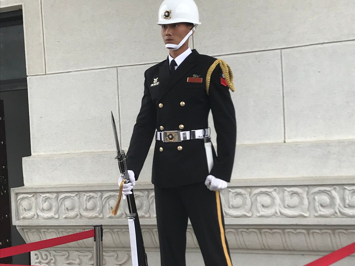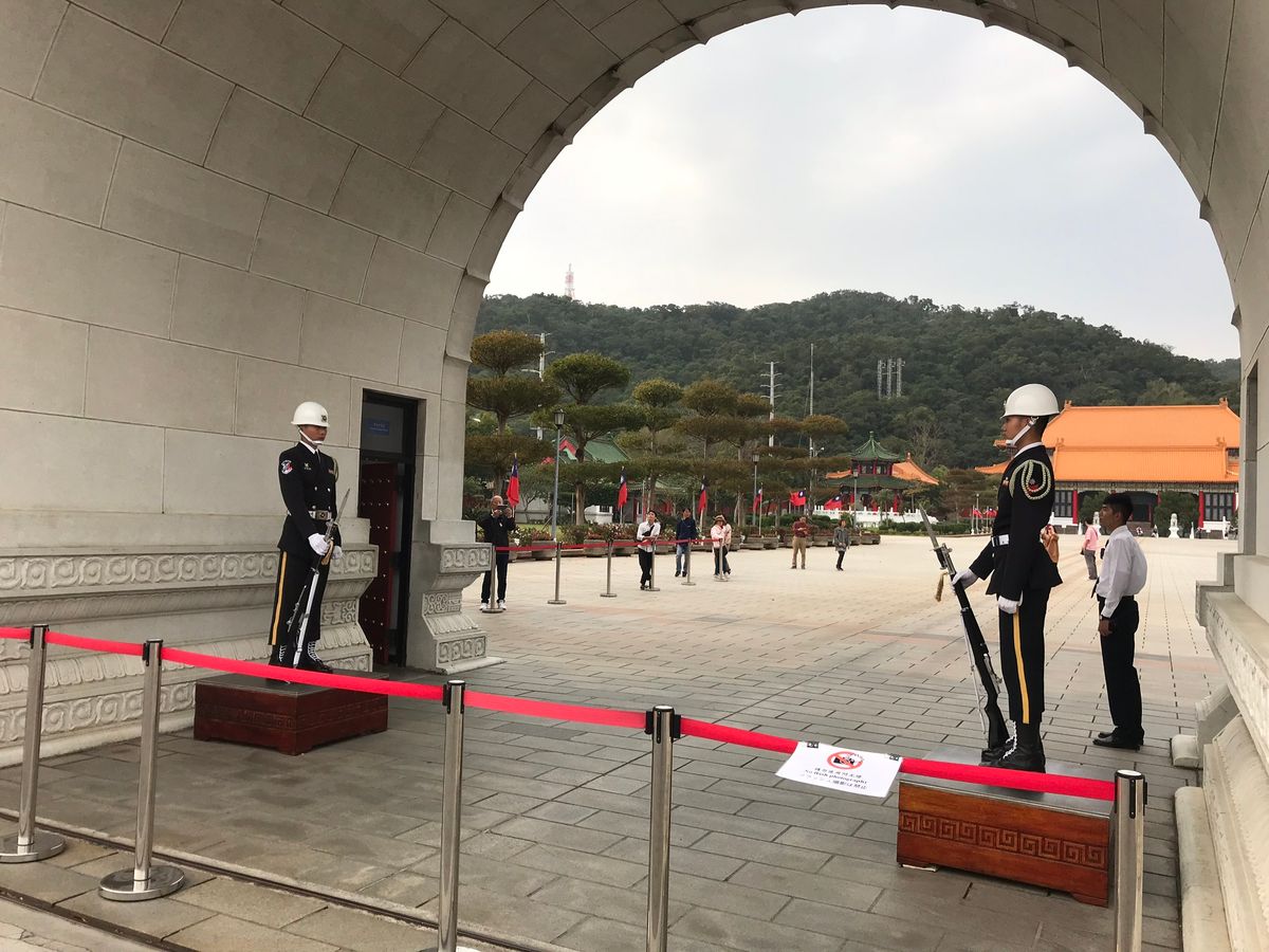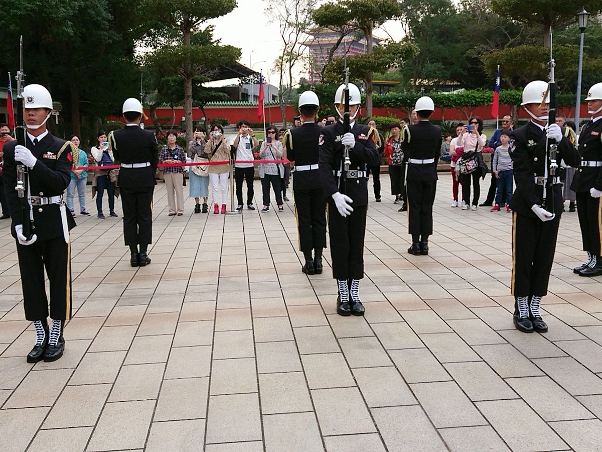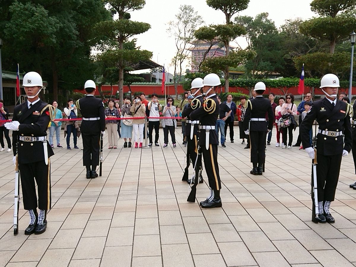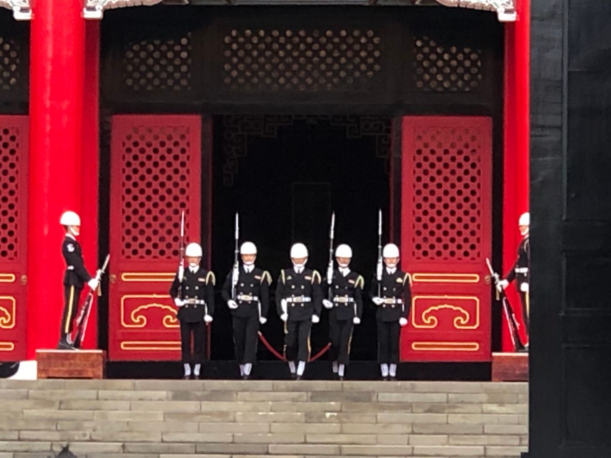 忠烈祠 衛兵交代式にも時間のロスなく到着 最終の交代式で兵舎に戻っていく交代式を見学しました。