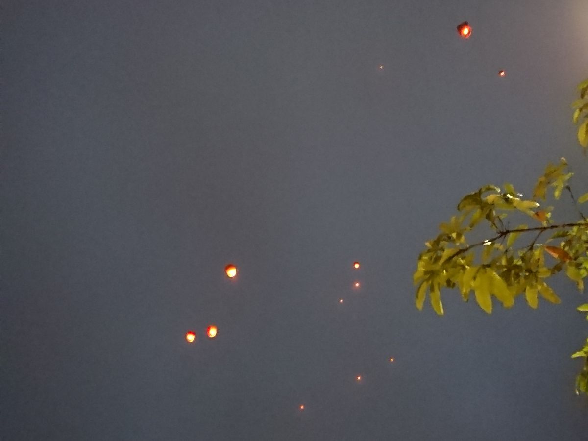 十分 日本にいる家族へ思い馳せて天燈に書いた願い事 山間の暮れ始めた空にすーっと上がっていく様は何とも幻想的です