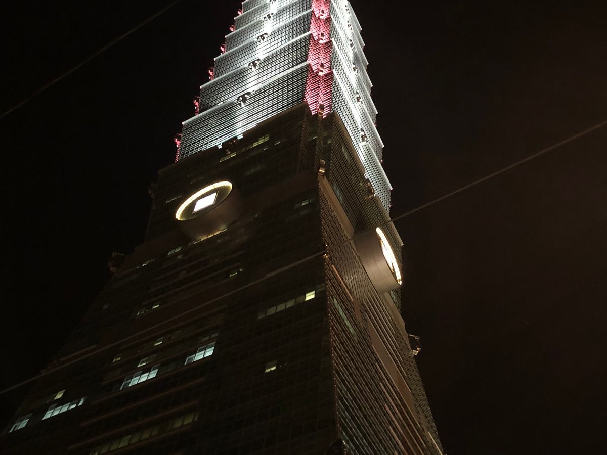 101タワーは最上階の屋外の夜景を見れるはずが工事か何かで行けませんでした。