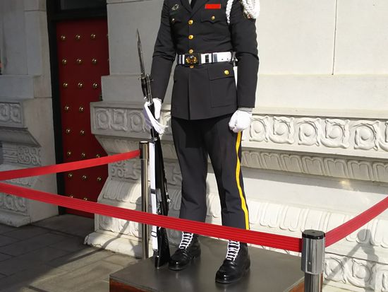 忠誠記念館の衛兵の交代式は、膝が悪いので、階段が辛かったです。家族に話したエレベーターがあると言われました。