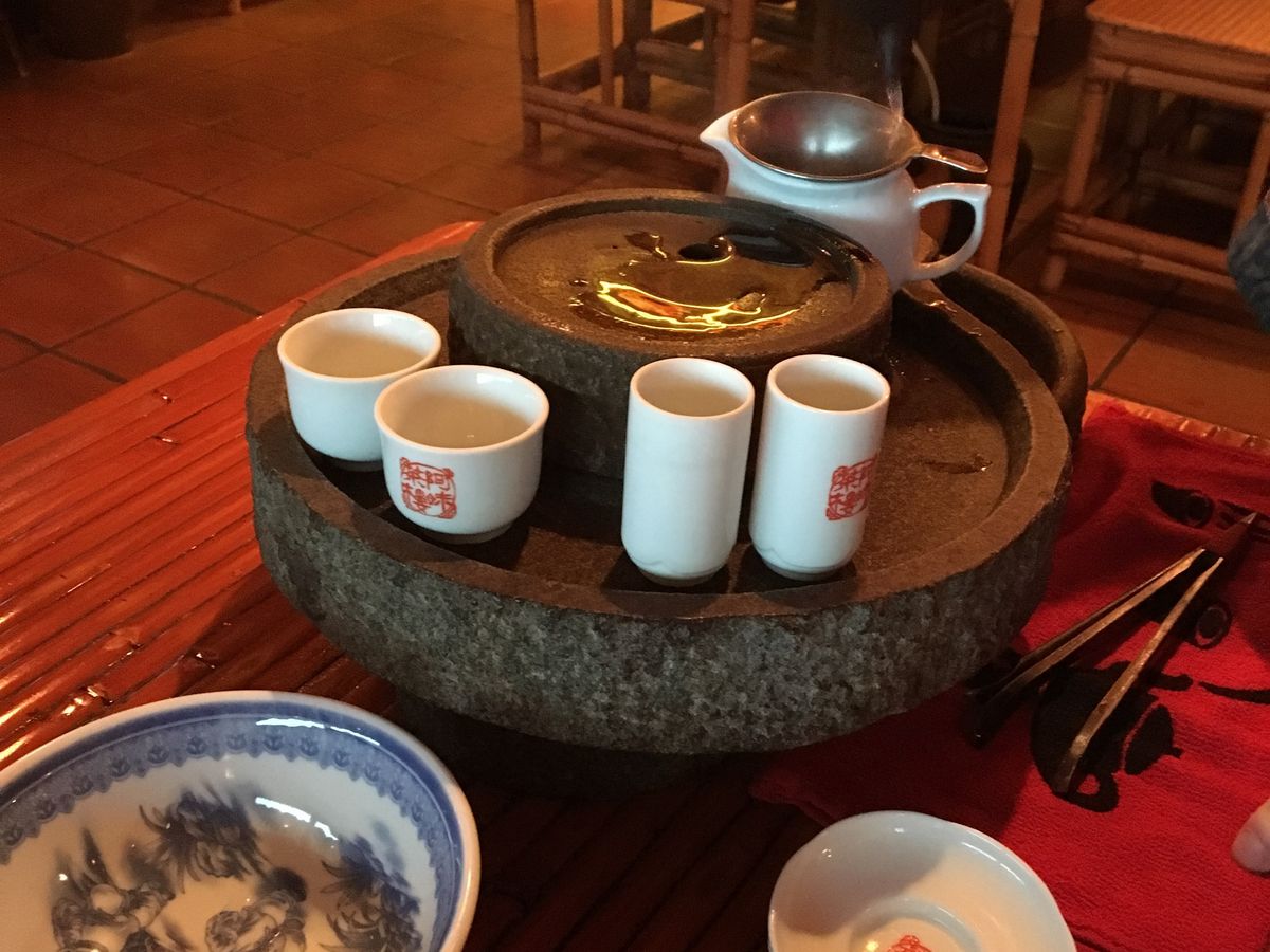 バスは混載で満員状態だったが、ガイドが上手で飽きさせない。「出店で食べるなら旅行の最終日に、腹痛は翌日に出るから」等の自虐ねたも受ける。お茶セミナーでは、お茶を頂きながら80歳になる女性が日本語で立て板の水の説明。昼食は値段が安いので心配したが5品以上出て、味もそこそこに美味しい。人気の足つぼマッサージでは日本と同じ位値段(30分、2700円位)で、真剣に施術、僕は痛くなった程だが、同行のメンバーは皆満足していた。