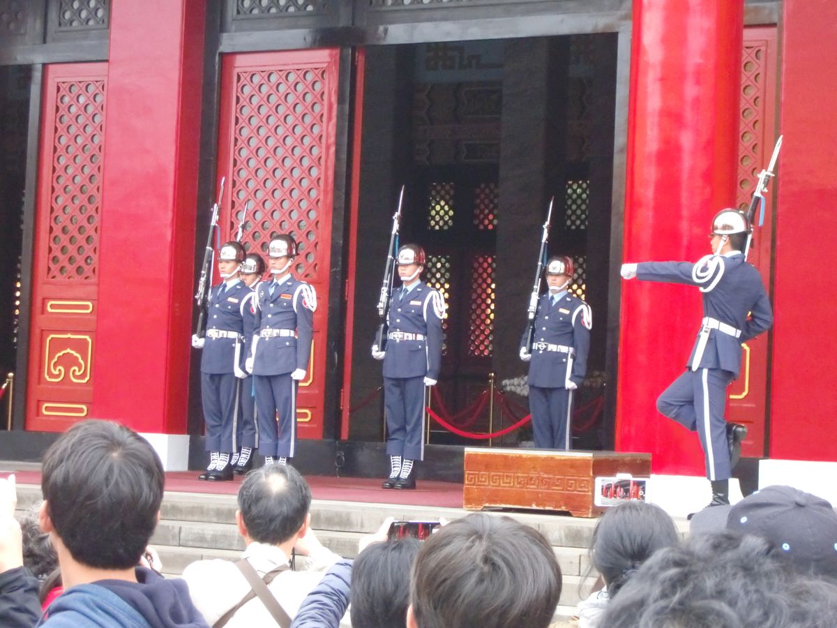 忠烈祠 衛兵交代を見学致しました。5名足並みを揃え約20分の移動で 衛兵になる為の条件などもあるらしく 日本にない光景でした。 最後はお土産屋さんで解散でした。