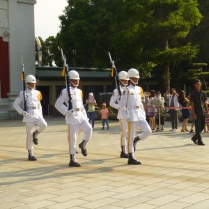 とにかく暑かったああ お茶セミナー楽しかった 説明が楽しくていろんなお茶飲みましたよ 中正記念堂は広くて迷子になるからねえええってくらい広かった 梅子のお昼ごはんはツアーの方たちと○テーブルでご一緒 忠烈祠では衛兵交代の時間に合わせて到着 かっこよかったねえええ ガイドさんの説明がガイドブックにも載ってない事も教えてくれました いよいよ故宮博物館に 混んでましたねぇ 観光客でいっぱいでした それでも美術品はすばらしかったです 足裏マッサージを体験しましたが すっごく楽しかった 体の悪いとこわかっちゃうんですね 運動不足と言われました ディンタイフォンの夕食です 店の前はお客さんでいっぱい 待ち時間40分の中 さすがですね 即テーブルに着くことができました 美味しかったああ あとは最大級の夜市 士林夜市へ 賑やかでお買い物できちゃうし タクシーで帰ればいっぱい遊べます 台北の名所を満喫できるツアーでした おすすめです