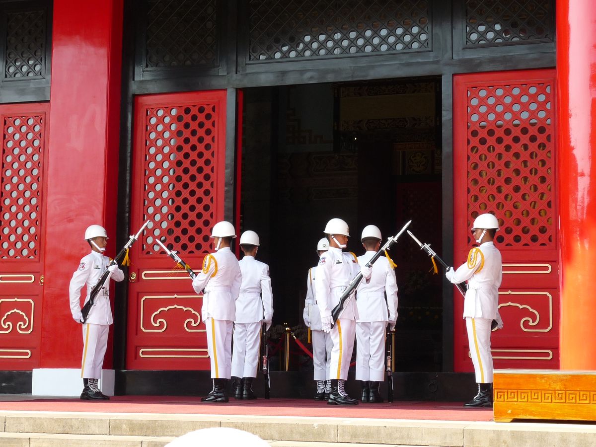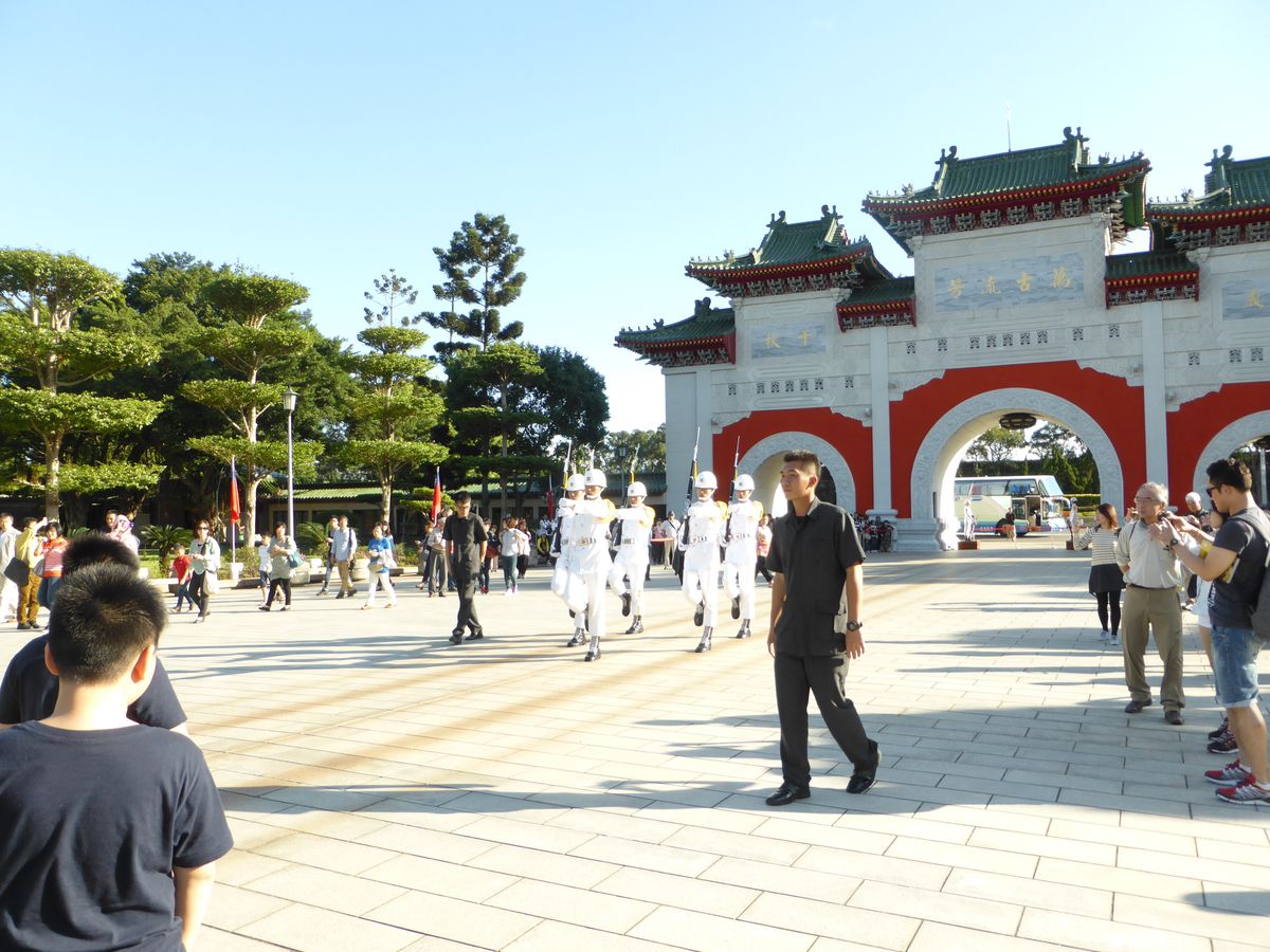 丁度交代式のタイミングで行くことが出来て、すごいよかったです。台湾の中でもイケメンで身長がいくつ以上でと条件が厳しく、かつ優秀な方しかこの交代兵にはなれないとガイドさん言ってました。