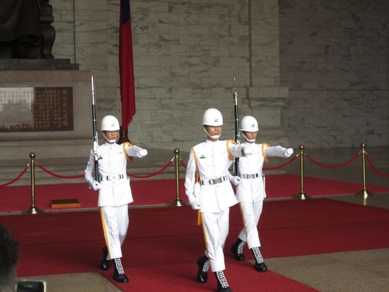 忠烈祠、中正紀念堂で毎正時に衛兵の交代があるのですが、