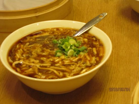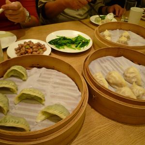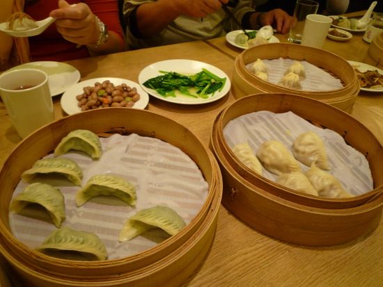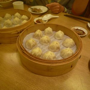 世界的に有名なグルメな店ということでぜひいってみたかった。大勢で食べるからいろんな品数も食べられるということでなるほどでした。入る前から予約できない店。席もそのとき次第とかとりあえずあわただしく入りあわただしく食べるということはわかっていましたがせわしかったです。まずはおつまみという昆布ともやしなどをいためたみたいなのがでてきました。小籠包はうわさどおり小ぶりで皮もうすめ、お上品です。一口ぱくっと食べれます。これをまず5個食べました。つづいて餃子1つづつえびシュウマイ、卵のシンプルなチャーハンがおいしかったです。後、酸味のあるスープは具たくさんでした。デザートのお皿がでてきたもののデザートがいつまでたっても出てこない。あわただしく動きまわってるわりに店員さん見てません。怪しいとおもったら早めに声をかけましょう。