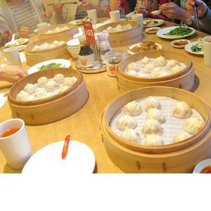 何度か鼎泰豊に行ったことがあるのですが、待つのがいやでツアーに参加しました。待ち時間の長いときには、1時間位待たされるので、待ち時間がいやな方には鼎泰豊の利用をお勧めします。ツアーなので10人位でひとつのテーブルを利用します。取り分け用に箸かスプーンを大皿に添えていただきたいと思います。