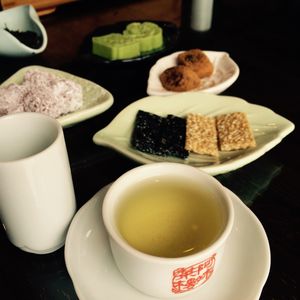 前回のバス利用のツアーでは軽食がついていて(あまりおいしくない中華)時間が決まっていたりで、ゆっくりできなかったのですが、チャーターはゆっくりで湯婆婆のお店「阿妹茶樓」でお茶タイム。
