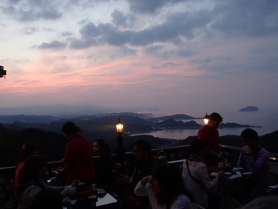 このツアーを利用したのが土曜日でしたが、大型の混載バスが入ってこれない時間帯に行くことができ、カフェのテラスからゆっくり綺麗な九ふんの夕暮れを見ることができました。