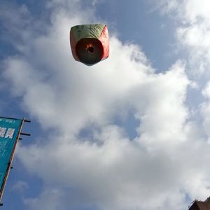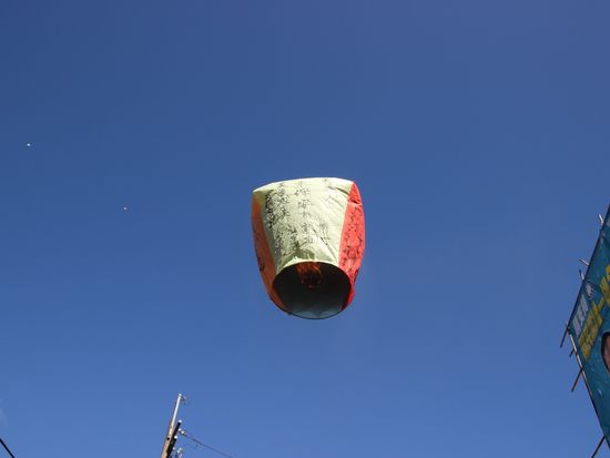 雨足の弱くなった時を見計らい天燈上げを飛ばしました。