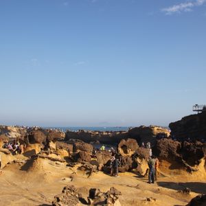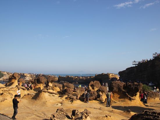 野柳で海鮮料理の昼食を食べ、浸食によって自然に造型された岩がある海岸で散策を楽しむことができました。