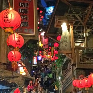 2014年12月末に台湾へ二泊三日で家族で行きました。チャーターしたバス、日本語ガイドさんはまずまず、期待もってツアーが始まりました。天燈上げは家族の願いを空にとばして楽しくできましたが、九扮はあまりにヒトが多すぎること、ごちゃごちゃ、ゴミも散乱。観光には。。。。さらに九扮メインの場所は、ひとヒトだらけ、、、階段も狭く、子供連れの我々には恐怖でした。。もし、順序を守らない他国のヒトが何かをしでかしたら、、、、将棋倒しで大惨事が想像できます。そのせいもあって、九扮のメインは途中で断念。。。命が大事です。観光地の整備や、段取りが今後は重要なのでは。。。丁度、上海で将棋倒しの事件発生。一歩間違えると同じ状況を想像すると家族連れにはおすすめできません。