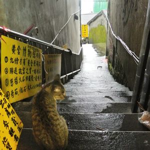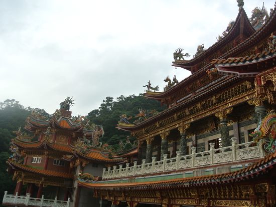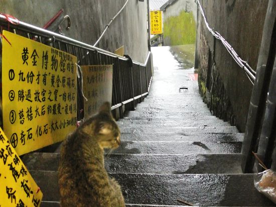 九份でゆっくり観光したいと思い、夕方4時にお迎えにきてもらいました。しかし、運転手さんいわく、この時期日没は18時40分頃で、直接行ったのでは早すぎるということで、九分の近くにある青雲殿を観光してから向かいました。赤い提灯が天井いっぱいにつり下がった光景、きらびやかな本殿、最上階から眺める山並みに少し霧がかかった水墨画のような光景はとても印象的でした。ツアーでは行けないというから、チャーター車を利用して九份に行かれる方はぜひ寄ってみてはいかがでしょうか?陽が沈む少し前に九份に着き、セブンイレブン前で降ろしてもらって待ちに待った九份を観光。お店で色々食べながら階段道を目指しました。所々、脇道があって猫ちゃんがいたり…階段道までも絵になる光景がありました。階段道に着いたころにはすっかり暗くなって、赤提灯が夜空に映えます。就いていた頃に降っていた雨もやみ、本当にラッキーでした。写真を撮りながら、階段を下り、下りきったところで運転手さんと合流し、来た道を戻る途中、九份全体の夜景を眺められるスポットで車を止めてもらい、写真を撮りました。遠くから見る九份もきれいでした。その後、饒河街夜市を観光し帰ってきました。九份の観光だけなら1時間半あれば十分だと思います。青雲殿に行くなら+30分、夜市観光で+1時間ってとこでしょうか。市内から九分まで往復約2時間(平日)でした。