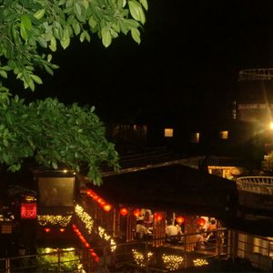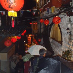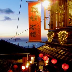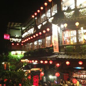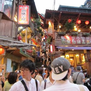 9月の連休でちょうど台風が台湾に近付いている時の参加でした。九ふんに着いた時は雨は止んでいてゆっくり散策できました。ガイドの方から教えていただいた九ふん茶房でゆっくりお茶を楽しみました。やはり台風のせいか、お店はいくつかしまっていましたが、それなりの風情を楽しめました。