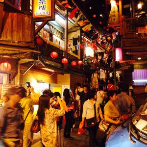 母親と2人での旅行でした。台湾は2泊3日の旅行だったのですが時間がないため効率的に色々回りたくて、今回ツアーに参加しました。普段はツアーなどは参加しないため、あまり内容には期待はしていなかったのですが、大変充実しており満足です!行きのバスの中ではガイドさんが面白く九份の魅力や歴史を教えて下さいました。到着してすぐに軽食でした。ちょうど夕暮れ時で景色が良かったです。ご飯は期待してなかったのですが十分においしかったです!野菜料理(キャベツ炒め、ナスの味噌炒め)などは食べやすかったです。ご飯を食べ終わった人から自由行動になるので、詰め込むぐらいの勢いで食べて散策にでかけました。ご飯をすぐに食べたということもあって自由時間は1時間半程。『時間足りない!滞在時間が長いツアーにしようかな?』っと思っていたのでず意外と十分でした!お店を歩き回って試食したりお土産買ったり、名物のいもだんごも食べました!量は多いけど十分!その後は、絶対に行きたかった『阿妹茶樓』で50分程ゆっくりしました。ツアーの集合場所がお茶屋さんの近くなので散策終わって最後に行くのがおすすめです。1人300元のお茶セットは台湾の物価で考えたら高いのですが、お茶菓子もおいしく、お茶っぱもたくさんあったので、飲みきれず、全然十分でした。日本が三連休だったこともあり、ナイト九份に来たバスは同時間で6台程。日本人でごった返しているのですが、お茶屋さんは待たずに入れました。ほとんどの人はお店の前の千と千尋の舞台となった建物の前で写真を撮っているだけなので、人が多くても諦めずに行って見てください!