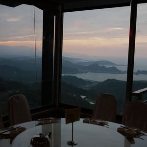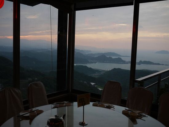 九分の夜景はとても幻想的で素晴らしかったです。ジプリ映画のなかにいるような光景にみな感動しました。食事は大皿を9人で取り分けましたが、男性が少なかったので十分な量でした。