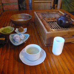私は九份茶房でお茶試飲させていただきお手洗いをお借りしました。階段の下に鯉が飼われて下の階にはギャラリーがあり素敵です。ちゃんとお茶も購入しましたよ。
