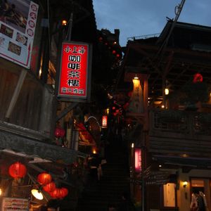 2012.4.27 あいにくの雨模様でしたが、降ったりやんだりで、これはこれで風情があってよかったです。ナイトツアーでしたが、夕暮れ時に到着し、基隆港も見下ろすことができ、夜景を見ながら郷土料理(軽食ということでしたが、普通の量の食事、日本人好みの素朴な味でした)を味わうこともできました。ガイドさんの案内にはありませんでしたが、事前にネットで調べた小さなトンネルの先にある食事もできるお茶屋「芋仔蕃薯」(階段沿いで、「阿妹茶酒館」の隣のトンネルを入ってください)がレトロ感たっぷり、ガイドブックにも出てこない店だからか、貸切状態。接客も大変親切で大満足。お茶も美味しい、夜景もきれい、サービスのお菓子が気に入って、お土産に50元/袋を15袋購入したら、おまけを5袋もくれて、またまた大満足。九フンは絶対にお薦めです。台北市内の喧騒を忘れてゆったり、まったりできますよ。