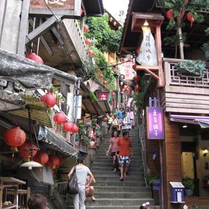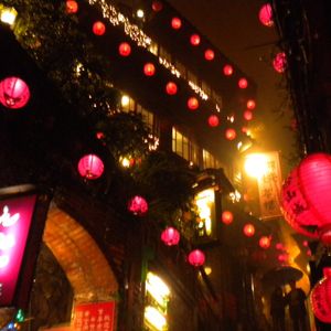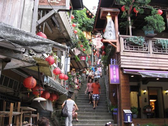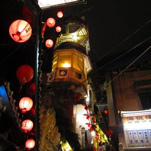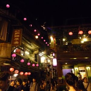 昭和に時代に戻ったような何とも言えない懐かしさと夜の提灯に火がともったときの、ほんわりした暖かさを感じました。10年程前にツアーに含まれていたときは昼間訪れたので、また違った印象を受けました。「千と千尋の神隠し」の舞台になった「あめおちゃ」でお茶セットを海の見える絶好の場所でいただきました。一人300NT$(900円)と高いように感じましたが、ウーロン茶を何杯もいただけ、あまいお菓子も付いていたのでまあ満足でした。そこに行くまでの小さな店店がつづく坂道は売ってる商品も日本の40年前のような素朴な菓子類で、懐かしかったです。絶対夜にいくことをお勧めします、