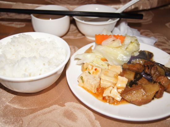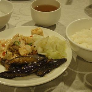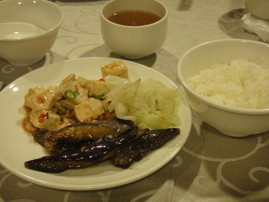 食事は“軽食”とのことでしたが、麻婆豆腐、麻婆茄子、白菜の塩炒め、豚肉の炒め物、ご飯、スープという感じで、かなりお腹いっぱいになりました。