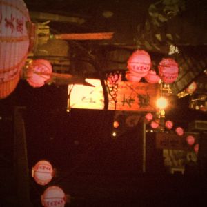 ちょうど着いた時には夕焼けがきれいで、軽食後は日も暮れて赤提灯が浮かびあがった感じがきれいでした。