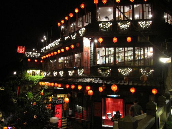 台湾は二度目で、前回は昼間の参加です。夜の九分はアニメのモデルになっただけあって、とても幻想的な風情でした。ガイドさんによると、「九分は10回のうち8回は雨にあたる」とおしゃっていましたが、その日の夜は運よく雨に当たりませんでした。(でも帰りに寄った台湾市内の夜市
