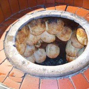 んなに待たずに買えました。壺で焼いている写真です。