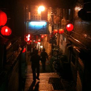 前日に昼の九分を散歩して次の日の夜、また行きました。あいにく雨でしたが観光客が少なく、ゆっくり散策しました。