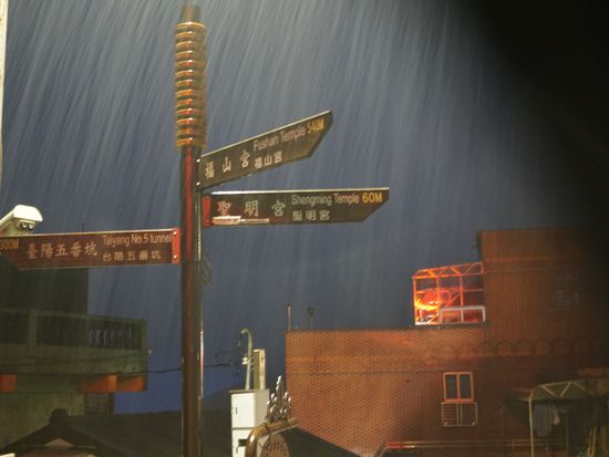 前もってインターネットの口コミなどで、九份はとにかく雨、と聞いていたので、レインポンチョ、レインブーツ、傘、さらにカメラにまでレインカバーを付けて行きました。結果としては大正解で、台北市内は降っていなかったのに、九份の特に上の方は暴風雨でした。