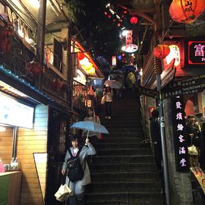 夜の九份は大人気で大混雑でしたがとても良かったです。階段がきついので年配の方は大変だと思います。雨が降っていたので滑るし。