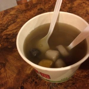 雨が多いと聞いてましたがどしゃ降りでした。しかも風も凄く最悪な天候でした。私達は折りたたみの傘を持参しましたが無い方はバスの駐車場近くで購入する事となってました。そこから5分程、歩き階段を登り軽食と書いてありましたががっつり、ご飯、麻婆豆腐、麻婆茄子系、白菜煮、スープ、唐揚げ系と…お腹が一杯となり、食べた人から自由解散。なんせ、豪雨の為、一番上までは上がらずパンフレットなどに掲載されている位置から写真を取りお茶をしようとしました。阿妹茶酒館 に行列が出来ていて入ると丸テーブルの相席でお茶が300台湾ドル位だったような。高いし相席だしでやめますとお店を出て、写真を撮った位置からのお茶屋さんに入りました。ツアーでバスの中で貰った地図にはお茶屋の名前はのってませんでしたが写真スポット★印のあるお店です。ジャスミン茶とミルクティー〔160台湾ドル〕を呑みましたがめちゃめちゃミルクティーが美味しかった!ポットに入ってくるので5.6杯は飲めます。そこにいるおじさんはとても優しくお店に入らない人達にも写真撮ってあげますよ。と声をかけてあげたりと。私達も立ち位置を教えてくれ、写真撮ってくれました。絵葉書もどうぞとくれ。娘と感動しまくりでした。帰りにお礼にチップを渡そうとしたらいらない、いらない、気をつけてねと日本語上手に言われ、逆にパイナップルケーキを貰ってしまいましたとても幸せな気持ちになりました。娘があのおじさん、幸せになって欲しいと思ったと言ってました。その後、夜市に行き、胡椒餅を食べました。結構並んでましたが次々とはけるので時間はかからなかったです。凄く美味しくこれは並んで買って良かったです。