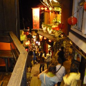 雨が多いとは聞いたいたのですが、なにもそこまで降らなくてもというほどの大雨に見舞わました。雨風が強かったので写真は撮れないは、階段を歩くのも滑らないように気を配るはで、全くというほど夜の九分を楽しむことが出来ませんでしたが、ツアー自体はガイドさんも面白く、軽食も満足だったので不満はありません。まあ、これもいい思い出です。次回機会があれば昼間のツアーに参加したいと思っています。