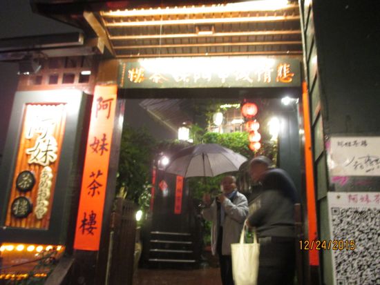 それでも、混雑して、人がいっぱいなのが、九份です!前後左右の人の傘のしずくで濡れてしまいました!有名な阿妹茶屋に飛び込んだのはいいのですが、お茶体験してしまい、時間をかなり費やしてしまいました。カフェの気持ちで入ったのが大間違いでしたでも、夜の九份の明かりは、素晴らしかったです