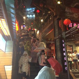 九份には初めて行きました。参加した日はバスが6台出ていました。ガイドさんより1年の7-8割は雨と聞きましたが、現地に着くなり物凄い雨に。道も狭いし不安でしたが、雰囲気が良く楽しく過ごせました。また食事も美味しくいただきました。