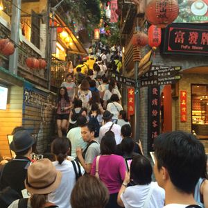 毎年台北ぶらり旅をしています。今年は中学生の息子と二人、九份に行こうということで、出発の前日にネットでこのツアーを申し込みました。実質参加の2日前です。当日は殆どが日本人ばかりでのバスツアーでした。大型バス5,6台ぐらいでしょうか、、。本来、人ごみが苦手な私としましては、現地の大混雑の階段や通路にはとても閉口してしまいましたが、もともとは電車とバスで移動していこうかと考えていましたが、移動手段としてはこのツアーにしてとてもよかったと思います。知人は電車とバスを利用してへとへとだったと言っていました。そういう意味ではこのツアーはおすすめしますが、九份自体は景色を楽しむだけの場所。千と千尋のお茶屋に入ってもお茶と茶菓子で一人300元で混雑した店内の真ん中のテーブルでのお茶だけ飲食には、ちよっと残念でした。九份にぜひ行ってみたいという目的で行かれる方にはおすすめですが、あまりの人気での現地の大混雑は覚悟されたほうがよいかと思います。ツアーガイドの女性の方は一生懸命説明してくださり、ツアー自体はとても満足です。現地の夕食(軽食)はそれなりです。