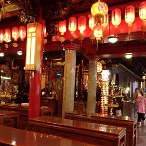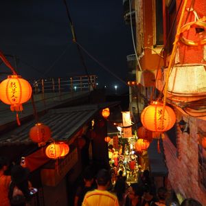夕方〜夜の九份が見たいけど、帰りの交通がちょっと心配。台北人の友人にもツアー利用のほうがいいよと勧められ、17:00出発のツアーに参加しました。九份に着いたときはまだ明るかったのですが、ぶらぶらしているうちにすっかり夜になり、提灯に明かりがともっていい感じに。それにしても人がいっぱい。時間が経つにつれ、人が増えていきます。阿妹茶楼も行列で、並んでしまうと集合時間に間に合わないので、次回のお楽しみです。私たちは饒河夜市でツアーから離れ、饒河夜市の入り口(ツアーバスの降車場所)にあったお寺でおみくじをひいたり、ゆっくり夜市を見て帰りました。往復のバス、夕飯もついて、お得なツアーでした。
