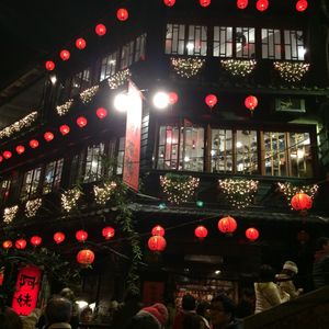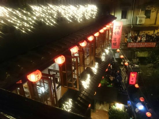 途中、正月だからか九ふんの手前で30分くらいバスが足止めとなり、何の説明もなく待たされたが、簡単な説明があれば良かった。食事処に行くともう用意されており、その後の自由時間を有効にすごせた。夜市もものすごい混雑で、見て歩くだけで大変だった。