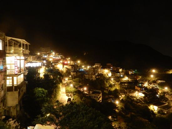 夜市に向うためバスで九ふんを後にするとき、ちょっと離れたところからみた九ふんの夜景がとても綺麗でした。
