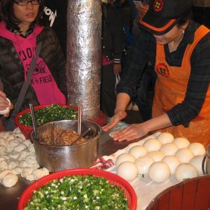 夜市はお祭りみたいににぎわっていて、ゆっくりとお店を見て、胡椒餅の列に並びました。胡椒餅は肉まんの具と青ねぎがたっぷり入ったお焼きのようで、アツアツで美味しかったです。