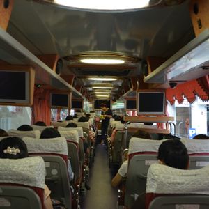 ツアーデスクに集合し、名前を呼ばれたらバスに乗り込みます。週末の