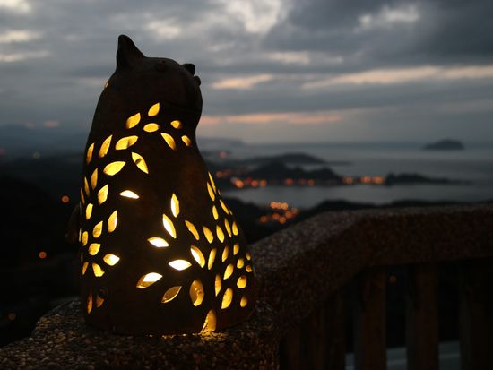 ちょうど日が暮れて灯りが灯る頃に到着。とてもいい雰囲気でした。