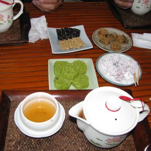 かなりの人ごみでしたが着いてすぐに自由行動だった為、阿妹茶棲に入れました。お茶とお菓子のセット、メニューはそれのみです。