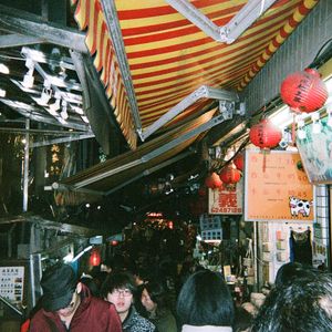 大晦日のツアーのせいか集合場所は大変混雑しており自分がどれに乗るか発表されるまでビルの地下にあるお土産物屋さんの奥で待ちました。しかし、バスに乗ってからは手際よくガイドさんの話を楽しく聞くうちにあっという間に到着しました。到着してほどなく、夕暮れの中に赤い提灯が並ぶ景色が広がりました。時間の配分もちょうど良く帰りは夜市で解散させていただきました。賑やかな夜市で昔ながらのゲームを子供と楽しみました。とても楽しかったです。