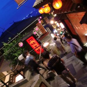 大型バス7台が乗り込むほど人気のあるスポットで、雨の中で傘が触れ合うほどの混雑でした。その混雑も楽しくなるように、提灯のあかりには魔力があるようです。食事も数人に分かれて、初対面でしたが、軽食とはいえない量でおいしく頂きました。帰り道が分からなくなるのが心配で早めに散歩を切り上げたのが心残りです。