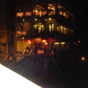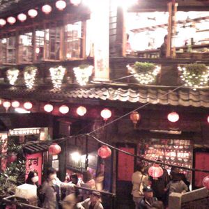 九ふんに到着したら、暗いのです。夜景を楽しむ場所ですから、当然ですが、階段を登るのも、人混みでなかなか、前進できず、観光客でごったがえしておりました。さすが人気スポット、お勧めのお店でお茶と夜景を楽しんで、その後お店を変えて夕飯です。女性ばかりの8人で円卓を囲みました。