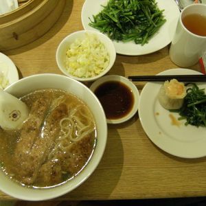 昼の11時に予約をしていたのですが、店の前は既に物凄い人混みでした。ミールクーポンのおかげで15分程待たされただけで、落ち着いた感じの2階席に案内してもらえました。空芯菜の炒めものや酸辣湯麺も出てくるのでかなりお腹はいっぱいになります。早い時間帯に予約するのであれば、朝食は抜いたほうがいいと思いました。