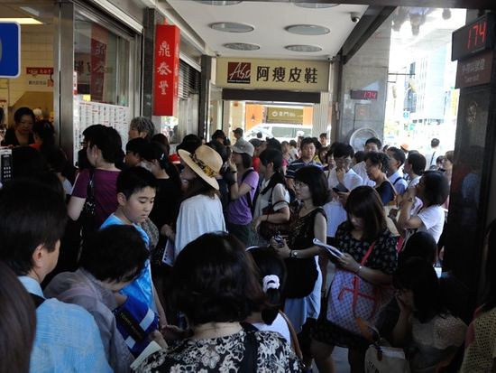 待ち方も日本のように列に並ぶのではなく、店員に名前と人数を申し出て、店の廻りに群衆が集まったような形で待ちます。なので、いつ呼ばれるか良く判りませんし、夏休みのように蒸し暑い時期は結構きついと思うからです。